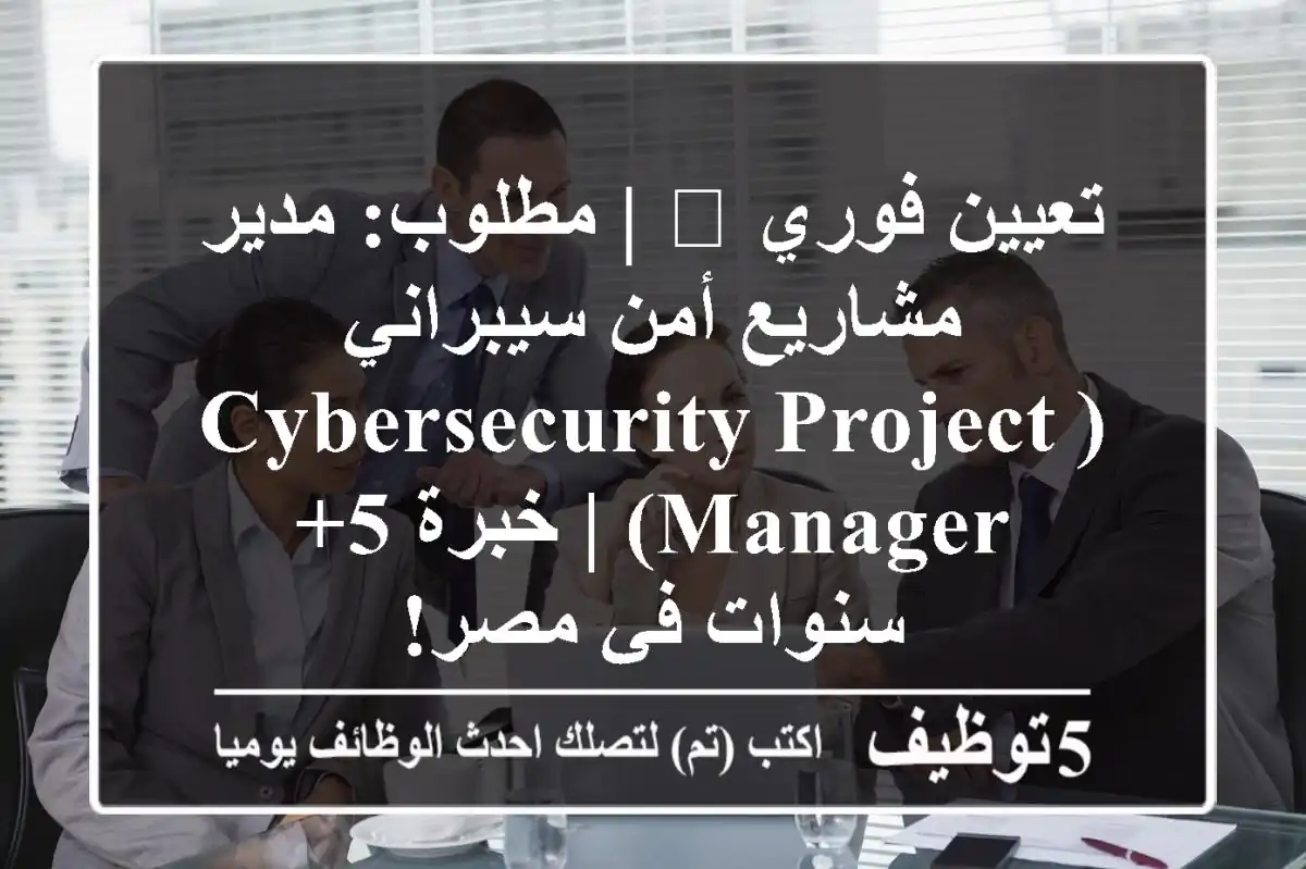 تعيين فوري 🚀 | مطلوب: مدير مشاريع أمن سيبراني (Cybersecurity Project Manager) | خبرة 5+ سنوات في مصر!