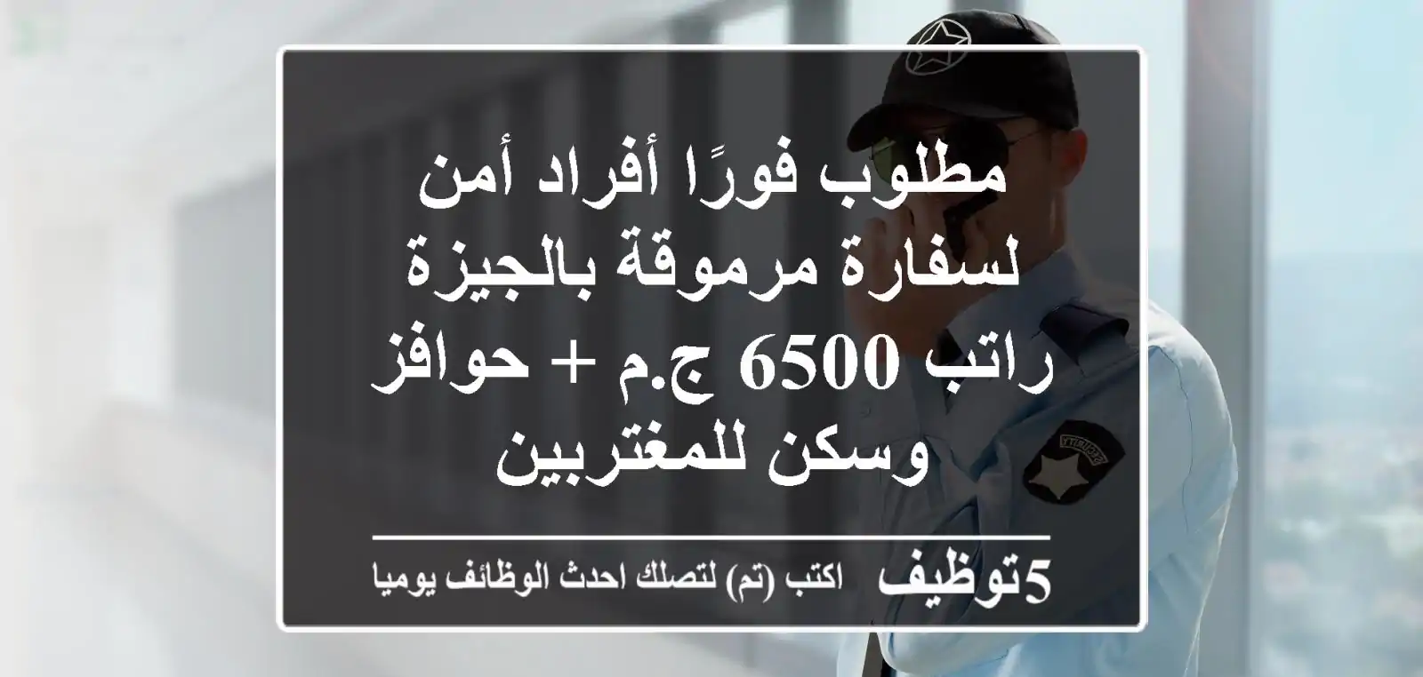 مطلوب فورًا أفراد أمن لسفارة مرموقة بالجيزة - راتب 6500 ج.م + حوافز وسكن للمغتربين
